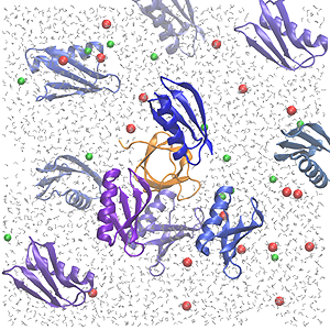 The viscosity and diffusion properties of crowded protein systems were investigated with molecular dynamics simulations of SH3 mixtures with different crowders, and results were compared with experimental data. The simulations accurately reproduced experimental trends across a wide range of protein concentrations, including highly crowded environments up to 300 g/L. Notably, viscosity increased with crowding but varied little between different crowder types, while diffusion rates were significantly reduced depending on protein–protein interaction strength. Analysis using the Stokes–Einstein relation indicated that the reduction in diffusion exceeded what was expected from viscosity changes alone, with the additional slow-down attributable to transient cluster formation driven by weakly attractive interactions. Contact kinetics analysis further revealed that longer-lived interactions contributed more significantly to reduced diffusion rates than short-lived interactions. This study also highlights the accuracy of current computational methodologies for capturing the dynamics of proteins in highly concentrated solutions and provides insights into the molecular mechanisms affecting protein mobility in crowded environments.